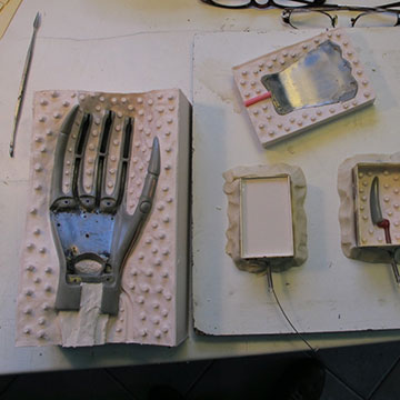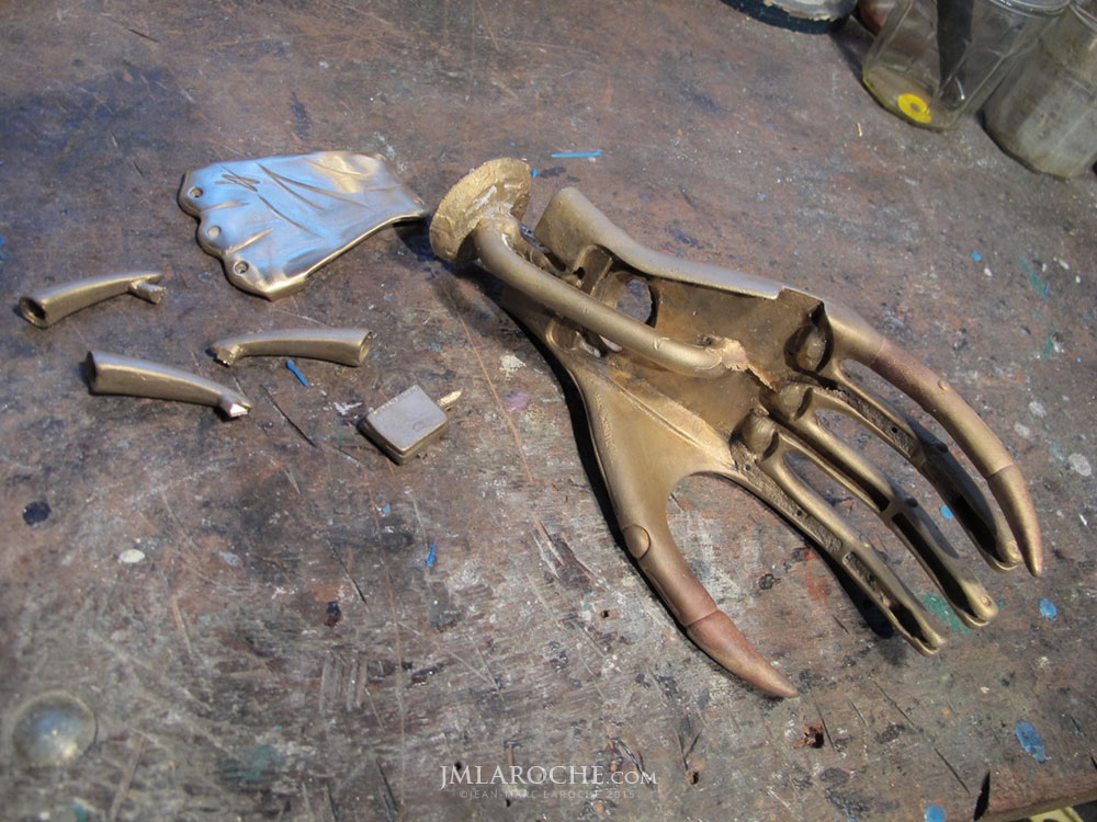 Toujours inspiré par le cinéma, je me rapproche ici des scripts de Guillermo del Toro, avec l’idée que cette main douée d’intelligence, pourrait s’agripper à celui qui aurait osé s’en emparer, et selon son humeur, le transformer en justicier ou en serial killer!